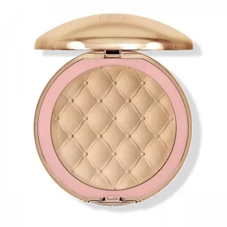 Za pomocą pędzla zaaplikuj puder na całą twarz, koncentrując się na kościach policzkowych oraz wystających częściach twarzy, które chcesz podkreślić blaskiem. W ten sposób utrwalisz makijaż i uzyskasz efekt delikatnego połysku oraz wygładzenia.