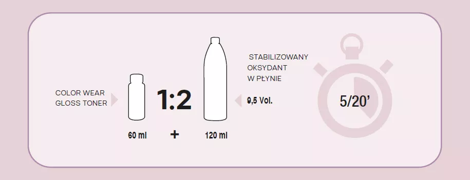 Alfaparf Milano Color Wear Gloss to aktywator, który jest nie tylko łatwy w użyciu, ale także skuteczny. Wystarczy zmieszać go w proporcji 1:2 z wybranym tonerem lub pigmentem, aby uzyskać pożądany efekt koloryzacji. Czas działania można dostosować od 5 do 20 minut, w zależności od oczekiwanego rezultatu.