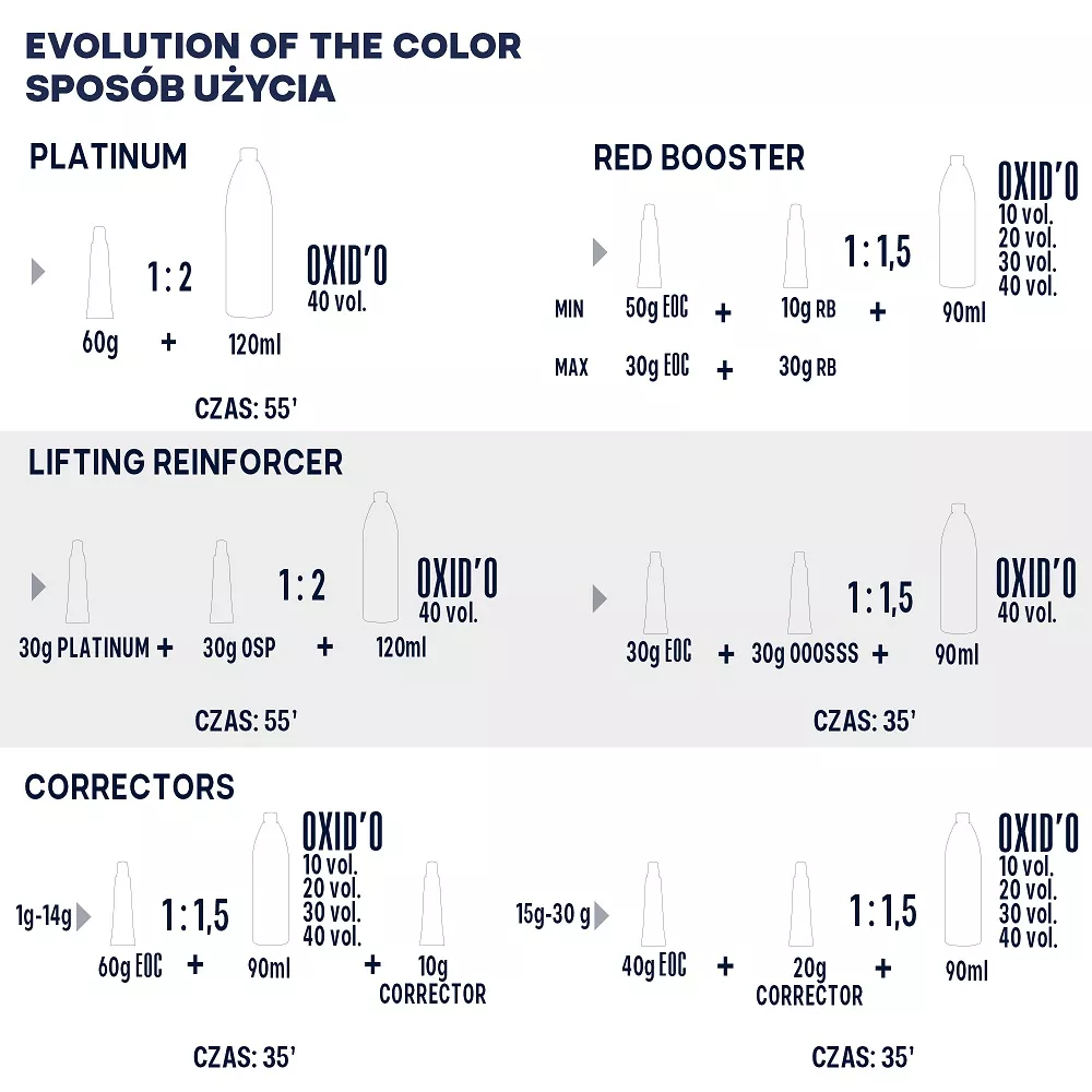 Aby uzyskać optymalne rezultaty, należy dokupić odpowiedni oksydant i zmieszać go z farbą w proporcjach podanych w instrukcji. Pojemność farby to 60 ml, co wystarcza na pełną aplikację.