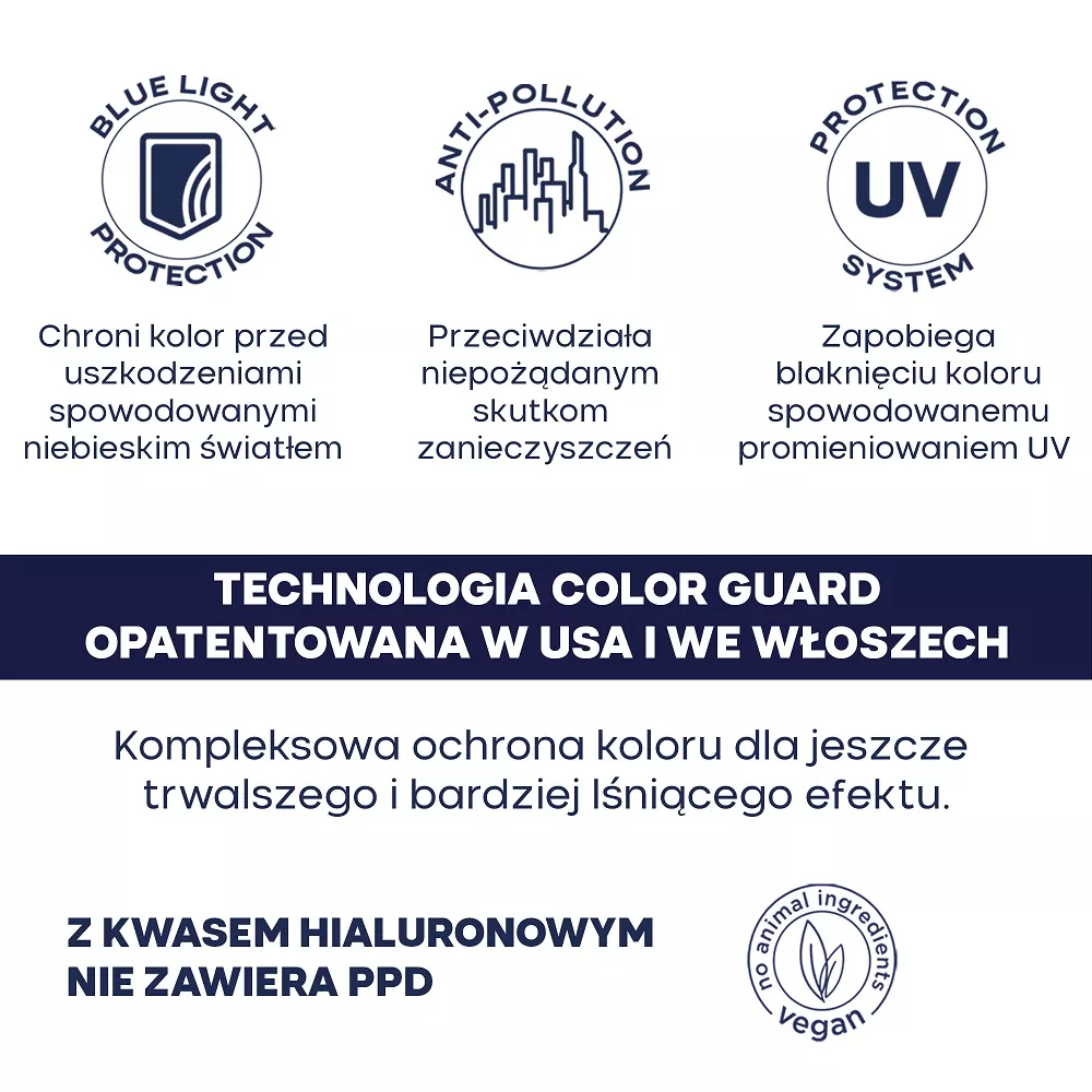 - Chroni kolor przed uszkodzeniami spowodowanymi światłem niebieskim.
