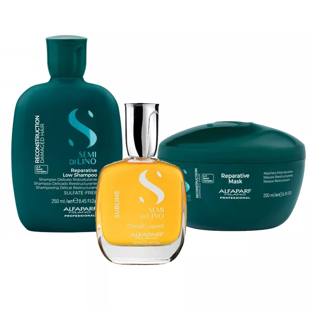 Szampon Semi di Lino Reparative Low to delikatny szampon restrukturyzacyjny do włosów zniszczonych. Delikatnie oczyszcza i wspomaga proces odbudowy włókna włosa. Regularnie stosowany przywraca włosom siłę i elastyczność. Alfaparf Milano Semi di Lino Reconstruction Reparative Mask to maska wzmacniająca zniszczone włosy. Wegańska i biodegradowalna formuła działa, wspierając proces odbudowy włókna włosa. spraw swojej urodzie prezent w postaci płynnych kryształków Alfaparf Semi di Lino Diamond. Twoje włosy będą chronione przed wilgocią oraz staną się miękkie w dotyku i łatwe w rozczesywaniu. Kosmetyk zawiera tarczę URBAN DEFENCE PRO. Dzięki niej włosy są chronione przed zanieczyszczeniami powietrza. Natomiast SHINE FIX COMPLEX to gwarancja połysku, który utrzymuje się do 24h.