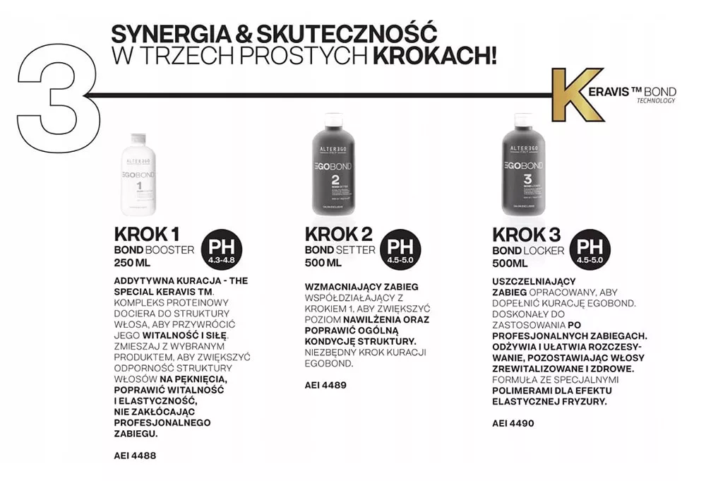 Alter Ego EgoBond, krok 2, to profesjonalny krem wzmacniający, który skutecznie odbudowuje włosy po rozjaśnianiu, przywracając im moc i zdrowy wygląd. Postaw na innowacyjną pielęgnację i przekonaj się, jak łatwo możesz zadbać o swoje włosy – wybierz Alter Ego EgoBond i ciesz się piękną fryzurą każdego dnia!