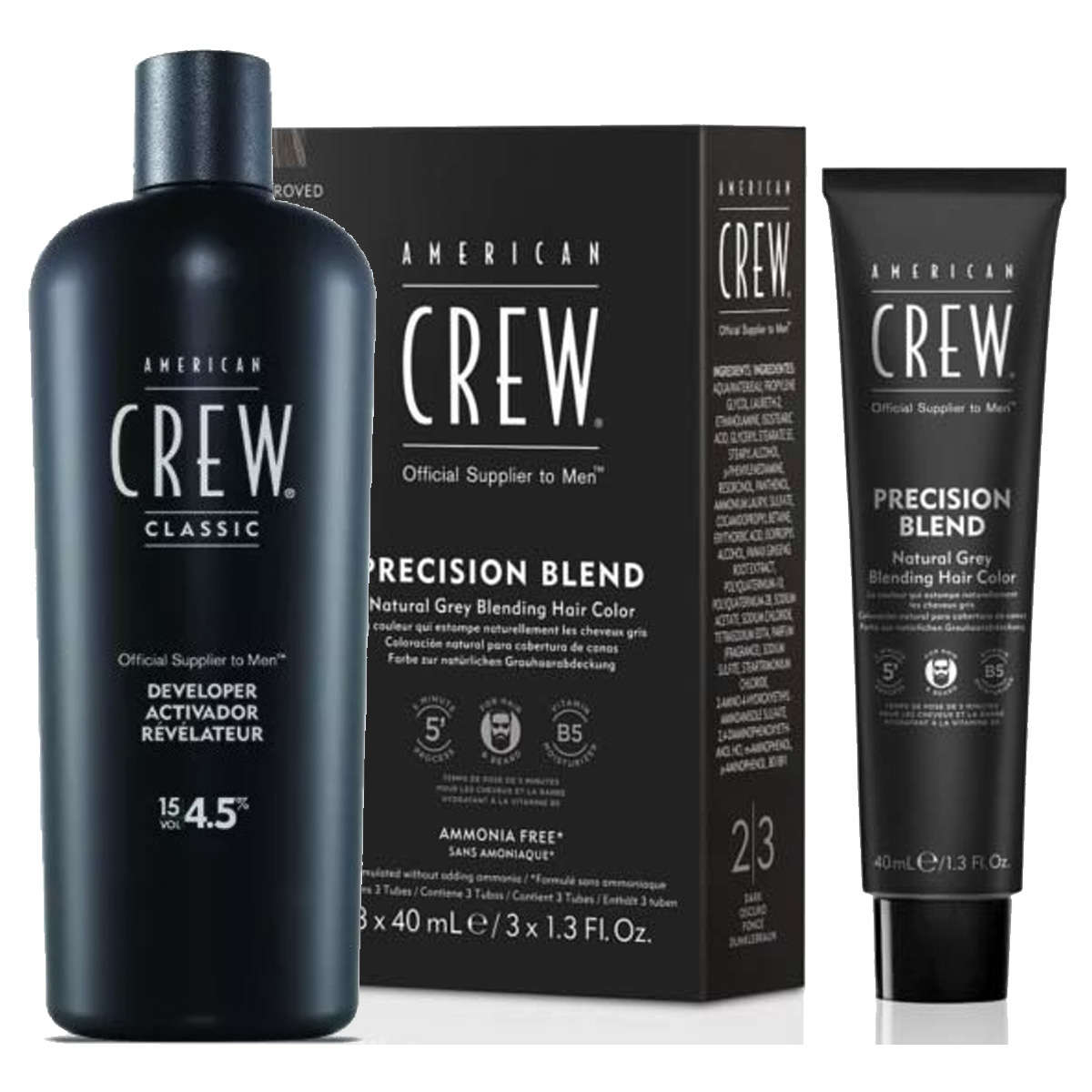 Odkryj tajemnicę eleganckiego i naturalnego wyglądu dzięki American Crew Precision Blend, zestawowi do koloryzacji dla mężczyzn, który dyskretnie usuwa siwe włosy. Ten wyjątkowy odsiwiacz zapewnia półtrwały efekt, przywracając naturalny kolor włosów od subtelnego melanżu do 100% pokrycia siwizny.
