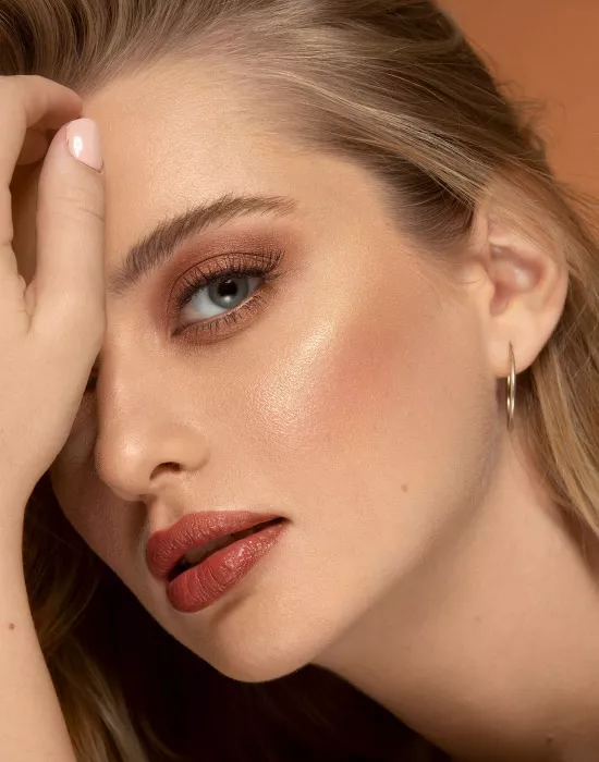 Aby uzyskać najlepszy efekt, nakładaj rozświetlacz małym pędzlem kabuki. Wcieraj kosmetyk w skórę, stopniowo zwiększając intensywność odcienia, aby osiągnąć pożądany poziom blasku.
