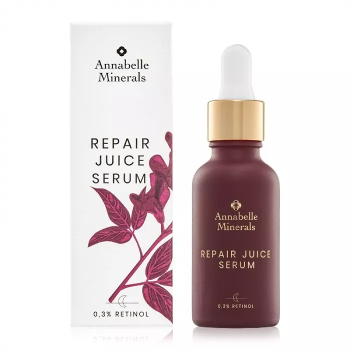 Odkryj Annabelle Minerals Repair Juice, zaawansowane serum z retinolem, które odmieni Twoją pielęgnację skóry. Dzięki zawartości 0,3% retinolu oraz unikalnym składnikom, takim jak ekstrakt z lucerny i szarotki alpejskiej, serum to intensywnie odbudowuje i wygładza skórę, redukując widoczność drobnych zmarszczek. Idealne dla osób pragnących rozjaśnić cerę i poprawić jej jędrność, zapewniając jednocześnie delikatne działanie.