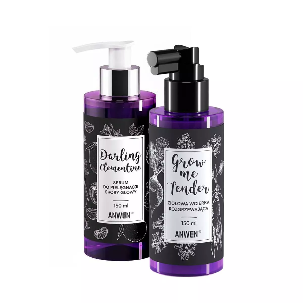 Odkryj, jak ważna jest pielęgnacja skóry głowy dla zdrowia i piękna Twoich włosów dzięki Anwen, zestaw do pielęgnacji skóry głowy. W skład tego kompleksowego zestawu wchodzi serum Darling Clementine oraz wcierka Grow Me Tender. Te starannie dobrane kosmetyki pomagają w zwalczaniu podrażnień, przesuszenia oraz nadmiernego przetłuszczania, przywracając skórze głowy równowagę i wspierając zdrowy wzrost włosów.