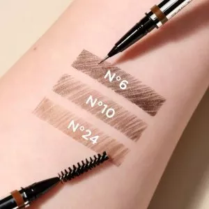 Za pomocą ultracienkiej końcówki delikatnie narysuj kreski imitujące naturalne włoski w miejscach, gdzie chcesz podkreślić brwi. Następnie użyj wbudowanego pędzelka, aby nadać brwiom pożądany kształt. Ciesz się idealnie naturalnym wykończeniem przez cały dzień!