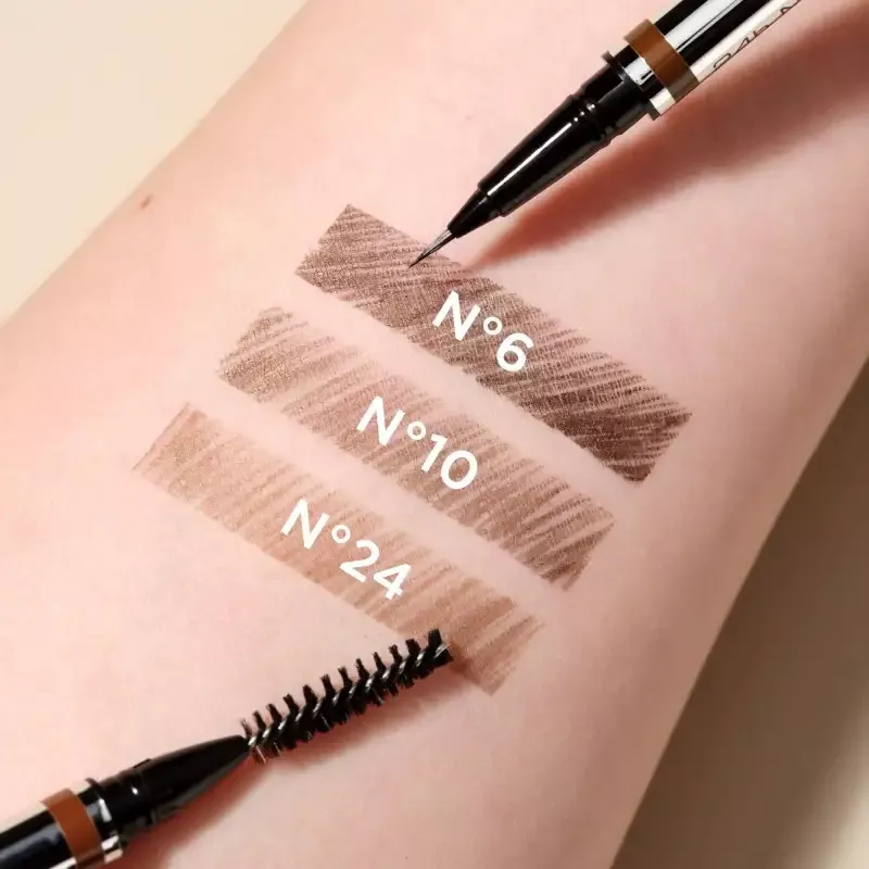- Wbudowany pędzelek do nadawania kształtu brwiom