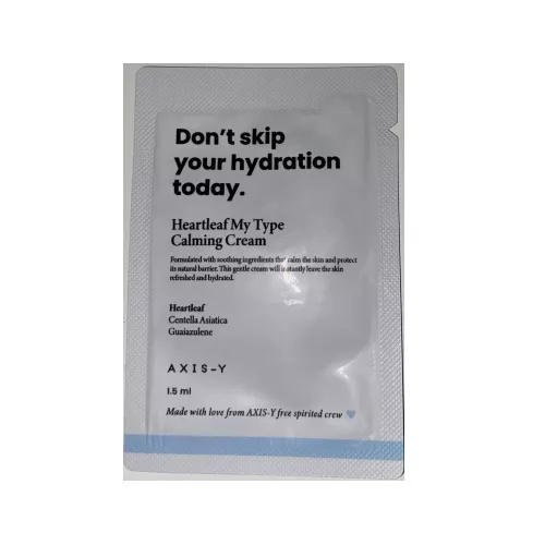 Odkryj kojący krem do twarzy Axis-y Heartleaf My Type Calming Cream w wygodnej saszetce 1.5 ml. Ten lekki krem o konsystencji żelu jest idealnym rozwiązaniem dla podrażnionej i odwodnionej skóry, przynosząc jej natychmiastowe ukojenie. Stworzony na bazie pstrolistki sercowatej i wąkrotki azjatyckiej, zapewnia intensywne nawilżenie i lekkie wykończenie, idealne do nakładania warstwowego.