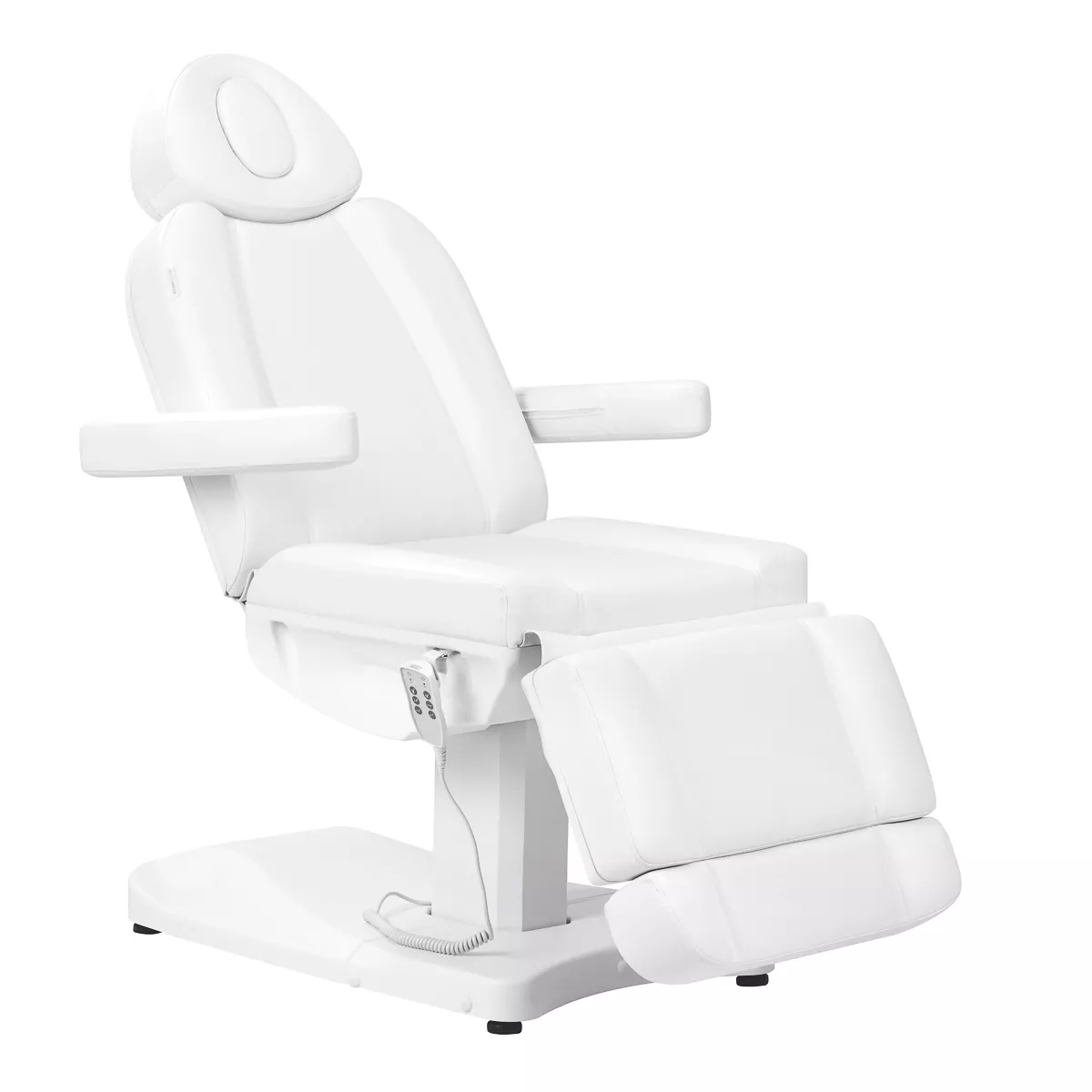 Elektryczny fotel kosmetyczny Azzurro 803D wyposażony został w 3 siłowniki, sterowane za pomocą pilota przewodowego lub dołączonego napędu nożnego. Cechuje się stabilnością, znaczną możliwością indywidualizacji oraz uniwersalnością, doskonale sprawdzi się więc w wielu specjalistycznych gabinetach.