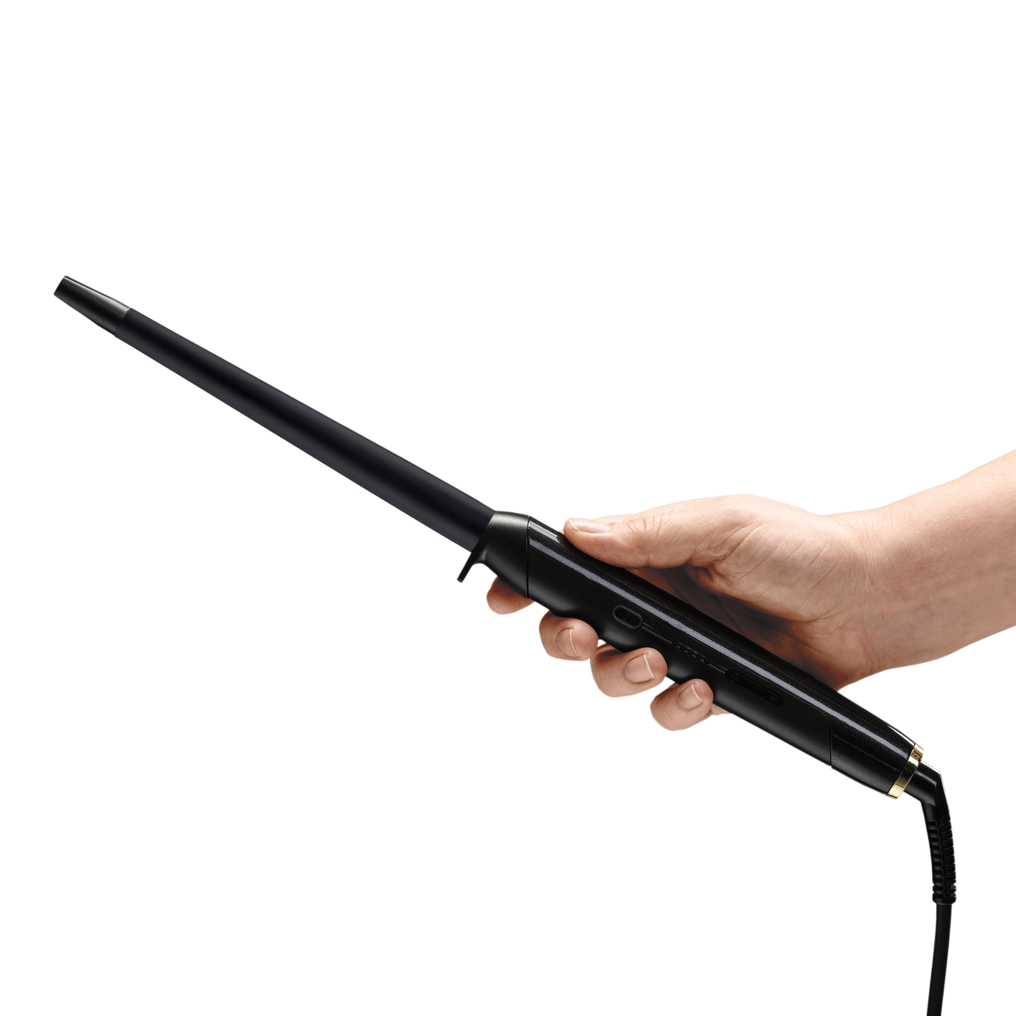 - Stożkowa grzałka 19–13 mm – pozwala uzyskać loki o stopniowanym skręcie: luźniejsze u nasady, bardziej zdefiniowane na końcach.