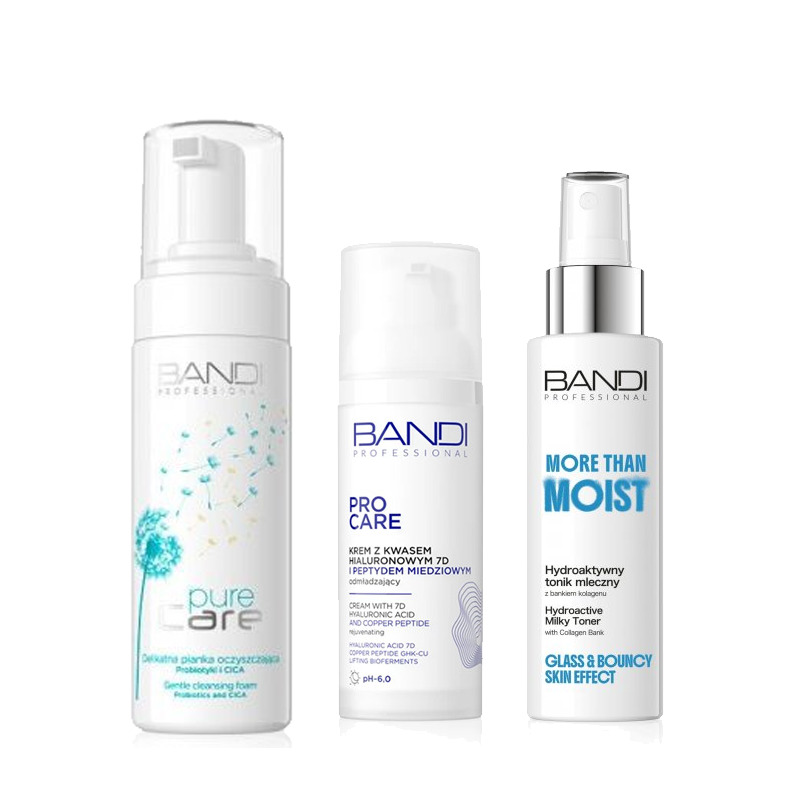 Odkryj wyjątkową pielęgnację cery z Bandi Pure Care – delikatną pianką oczyszczającą z probiotykami i ekstraktem z CICA. Odkryj nową generację pielęgnacji skóry z Bandi More than moist, hydroaktywnym tonikiem mlecznym z bankiem kolagenu. Odkryj zaawansowaną pielęgnację odmładzającą z kremem do twarzy Bandi Pro Care z kwasem hialuronowym 7D i peptydem miedziowym GHK-Cu. To profesjonalny kosmetyk, który zapewnia intensywne nawilżenie i widoczny efekt liftingujący, przywracając skórze młody, promienny wygląd.