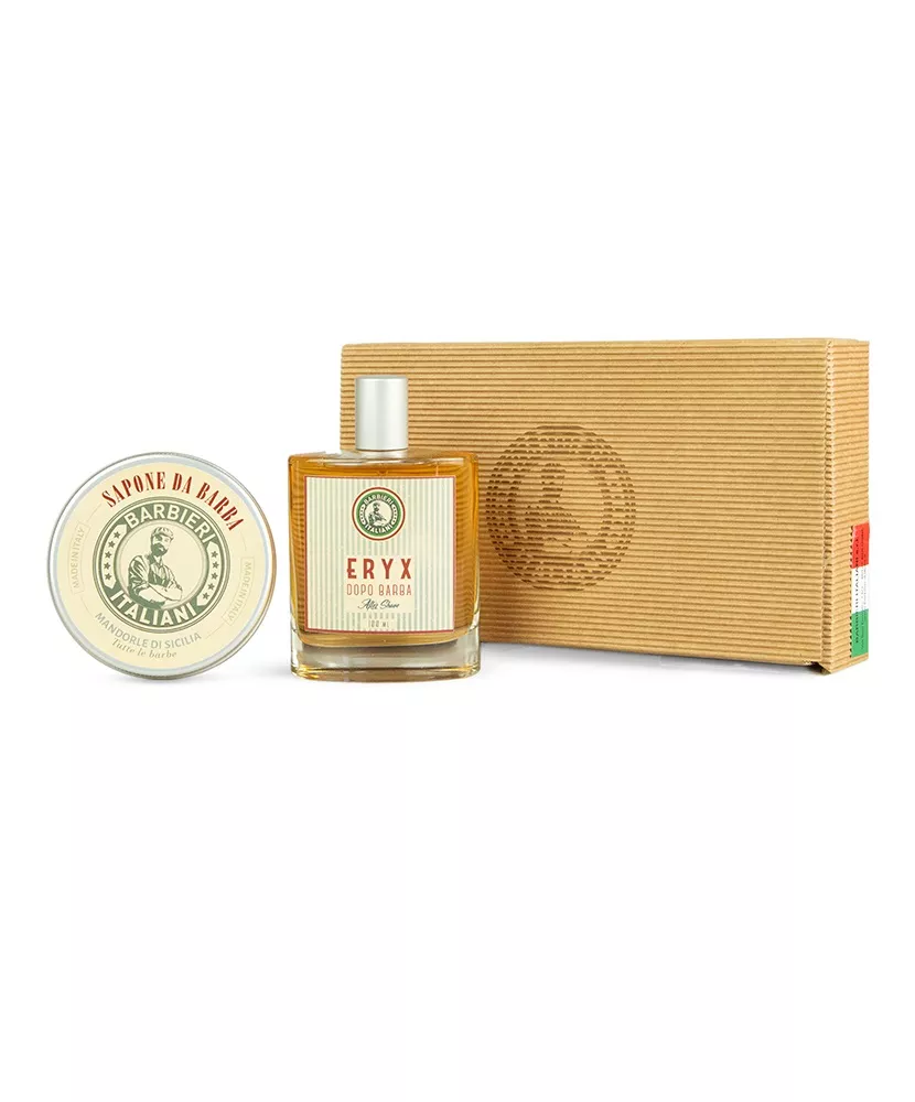 Te kosmetyki przydadzą się każdemu golibrodzie i z pewnością spełnią oczekiwania najbardziej wymagających mężczyzn. Zestaw do golenia Barbieri Italiani to mydło do golenia o zapachu sycylijskich migdałów oraz płyn po goleniu Eryx. Mydło doskonale się pieni i pokrywa skórę gęstą, delikatną pianą. Płyn ma właściwości antybakteryjne i odświeżające, niweluje również podrażnienia.