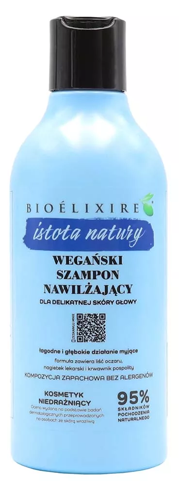 Odkryj siłę natury w pielęgnacji swoich włosów! Bioelixire Istota Natury wegański szampon nawilżający dla delikatnej skóry głowy to wyjątkowy kosmetyk stworzony z myślą o osobach z wrażliwą, skłonną do podrażnień skórą głowy. Delikatna, myjąca formuła oparta na 95% składników pochodzenia naturalnego skutecznie oczyszcza włosy, nie naruszając równowagi skóry. Dzięki starannie dobranym ekstraktom roślinnym szampon nie tylko nawilża, ale również koi i przywraca komfort nawet najbardziej wymagającej skórze głowy.