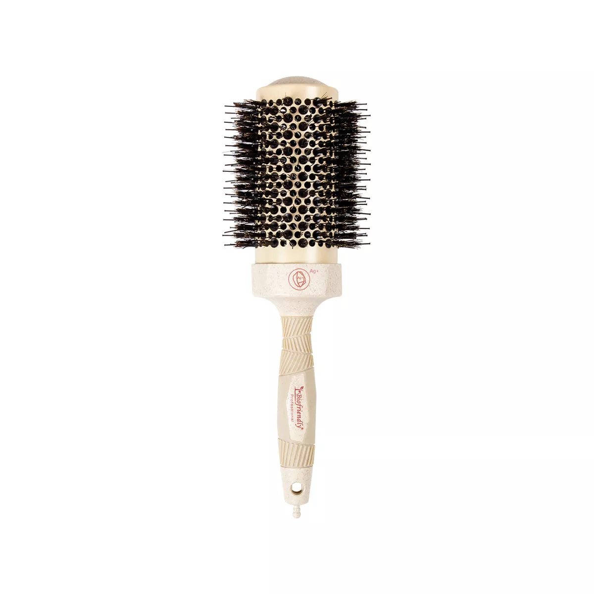Odporny na wysokie temperatury do 110oC biomateriał ze słomy pszenicznej, który redukuje emisję dwutenku węgla. Technologia Nano-Icon: usuwanie nieprzyjemnego zapachu, sterylizacja i zapobieganie powstawaniu pleśni. Miekki i ergonomoczny uchwyt zapewnia wygodę pracy, a niewielka waga szczotki ułatwia stylizację włosów. Szczotka szybko nagrzewa się i dłużej utrzymuje ciepło. Duże otwory przyspieszają cyrkulację powietrza podczas suszenia.