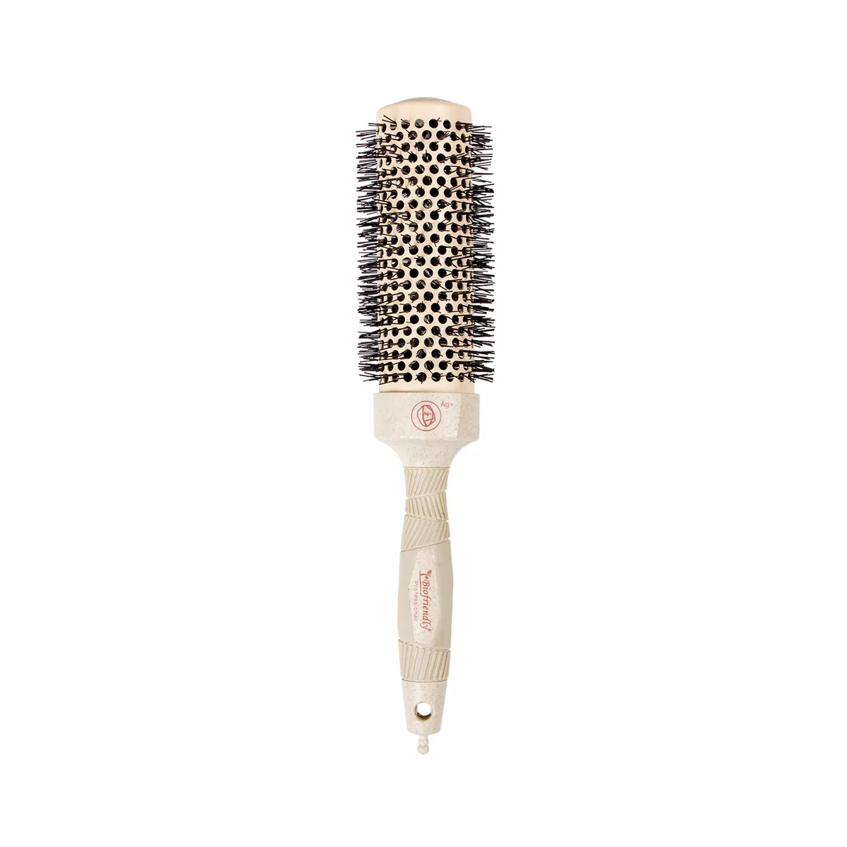 Całkowita długość szczotki 28,5cm. Korpus szczotki dłuższy o 1,5cm od standardowej długości. Odporny na wysokie temperatury do 110oC biomateriał ze słomy pszenicznej, który redukuje emisję dwutenku węgla. Technologia Nano-Icon: usuwanie nieprzyjemnego zapachu, sterylizacja i zapobieganie powstawaniu pleśni. Miekki i ergonomoczny uchwyt zapewnia wygodę pracy, a niewielka waga szczotki ułatwia stylizację włosów. Szczotka szybko nagrzewa się i dłużej utrzymuje ciepło. Duże otwory przyspieszają cyrkulację powietrza podczas suszenia
