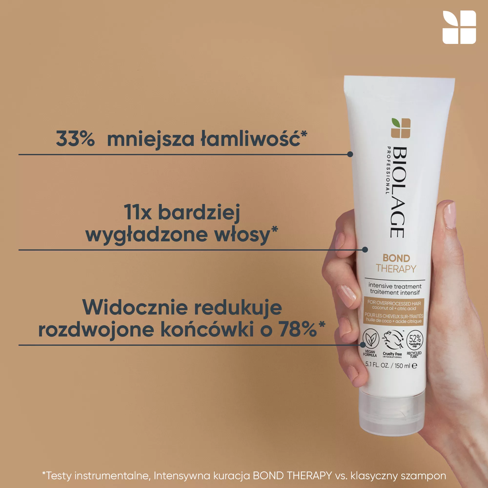 Biolage Bond Therapy to profesjonalna kuracja wzmacniająca dla osób poszukujących skutecznego rozwiązania na łamliwe, zniszczone i rozdwajające się włosy. Postaw na intensywne odżywienie i zauważ różnicę już po pierwszym użyciu! Sięgnij po sprawdzoną pielęgnację i ciesz się zdrowymi, pięknymi włosami każdego dnia.