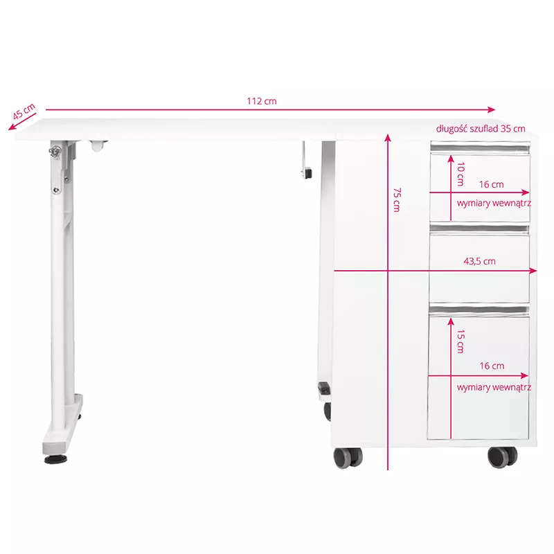 Biurko Activeshop 2038 to doskonałe rozwiązanie dla każdego małego gabinetu kosmetycznego, które łączy funkcjonalność z oszczędnością przestrzeni. Dzięki składanej konstrukcji możesz z łatwością dostosować przestrzeń roboczą do swoich potrzeb, zapewniając jednocześnie profesjonalny wygląd miejsca pracy.