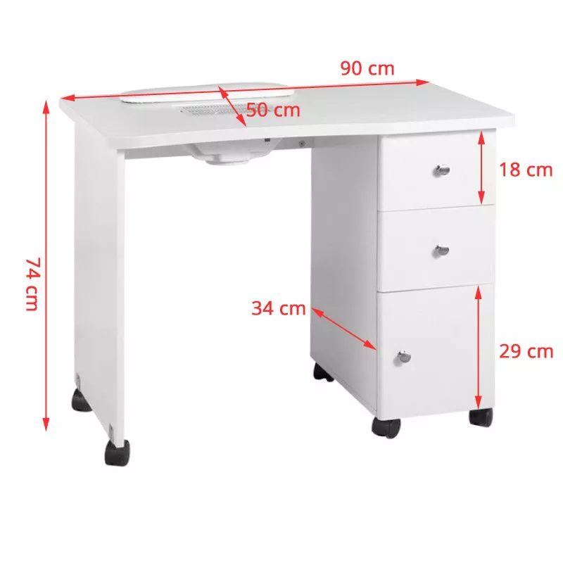 Biurko posiada wymiary 74x50x90 cm, co sprawia, że doskonale pasuje do różnorodnych przestrzeni, oferując jednocześnie wystarczającą powierzchnię roboczą.
