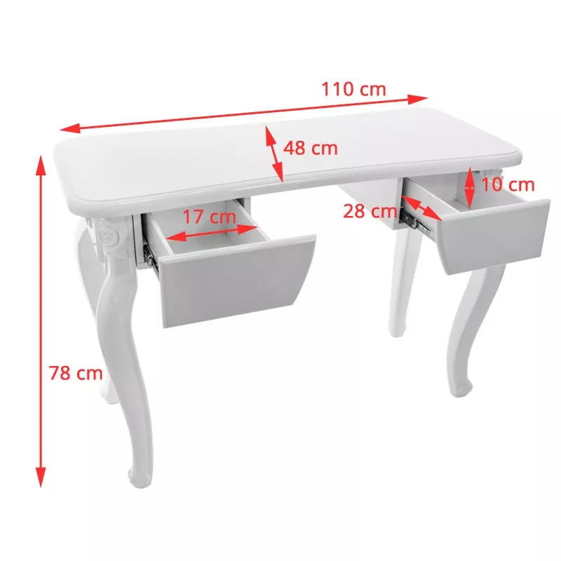 - Dwie pojemne szuflady, które pomieszczą wszystkie niezbędne akcesoria kosmetyczne.