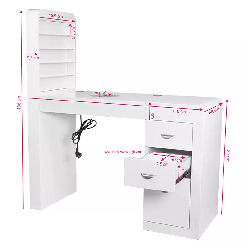 Odkryj idealne rozwiązanie dla Twojego salonu kosmetycznego z biurkiem kosmetycznym Activeshop 310 w wersji lewej. To nowoczesne i funkcjonalne biurko łączy w sobie elegancki design z praktycznymi rozwiązaniami, które usprawnią Twoją codzienną pracę. Dzięki wbudowanemu pochłaniaczowi pyłów i podświetlanemu regałowi ekspozycyjnemu, Twoje miejsce pracy zawsze będzie wyglądać schludnie i profesjonalnie.