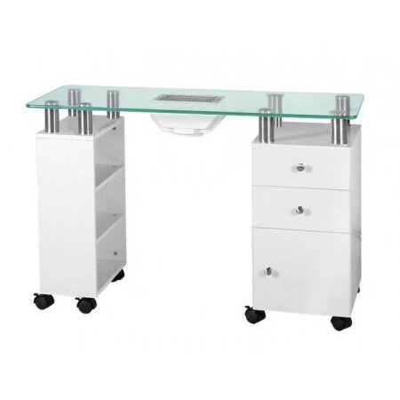 Odkryj funkcjonalność i elegancję z biurkiem kosmetycznym Activeshop Glass 013B. To wyjątkowe biurko do manicure, wyposażone w pochłaniacz pyłu, jest idealnym wyborem dla nowoczesnych gabinetów kosmetycznych. Dzięki swojej eleganckiej białej kolorystyce i przemyślanej konstrukcji, doskonale wkomponuje się w każde wnętrze.