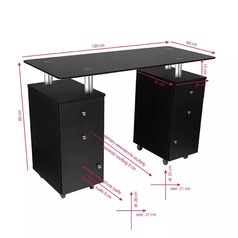 - Kilkunastocentymetrowe podwyższenie pod blatem idealne do zabiegów manicure.