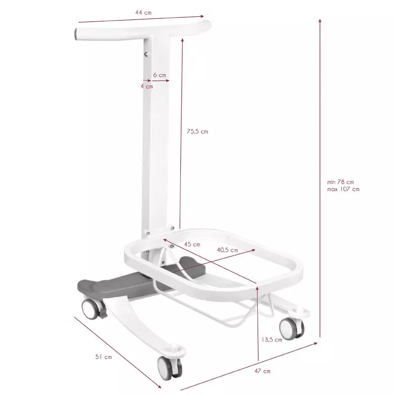 - Mobilność i stabilność: Wyposażony w cztery gładko pracujące kółka z funkcją blokowania, co umożliwia łatwe przemieszczanie i utrzymanie stabilności podczas pracy.