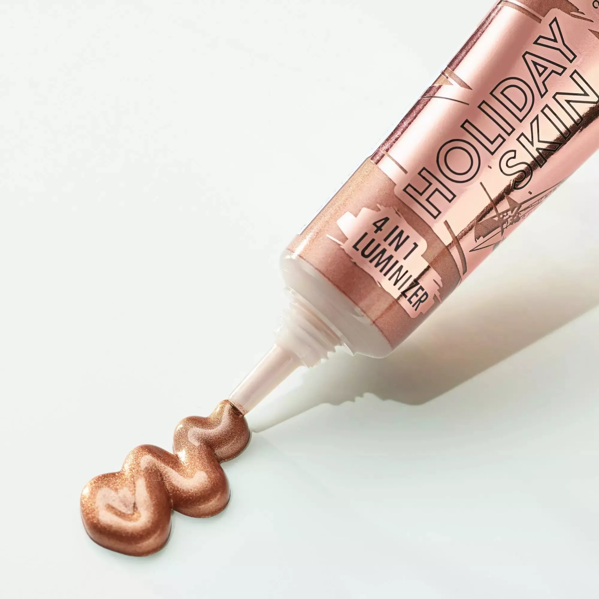 Odkryj magiczny blask z Catrice Holiday Skin 4in1 Luminizer - wszechstronnym rozświetlaczem, który przekształci Twoją codzienną rutynę makijażu. Ten innowacyjny produkt łączy w sobie cztery kluczowe kroki: konturowanie, rozświetlanie, aplikację różu i bronzera, oferując jedwabistą, płynną formułę, która idealnie wtapia się w skórę. Dzięki niemu uzyskasz efekt skóry muśniętej słońcem, niezależnie od jej odcienia.