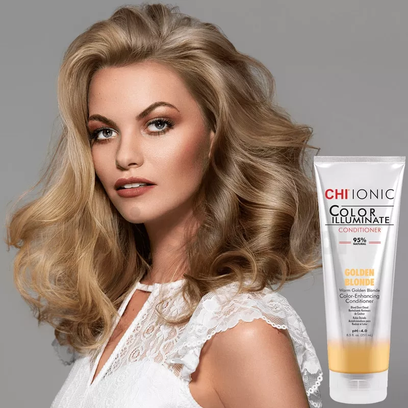 Szukasz sposobu na odświeżenie koloru swoich włosów lub nadanie im nowego, świetlistego odcienia? CHI Color Illuminate Conditioner Golden Blonde to odżywka koloryzująca, która pozwala cieszyć się pięknym, złocistym blondem każdego dnia. Dzięki innowacyjnej formule z kompleksem Silk Amino, produkt nie tylko podkreśla i pogłębia kolor, ale także dba o kondycję włosów, zapewniając im nawilżenie, blask i miękkość. Idealny wybór zarówno dla włosów farbowanych, jak i naturalnych!