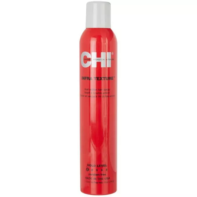 Marzysz o fryzurze, która zachowa perfekcyjny kształt nawet podczas najbardziej szalonych imprez lub w niesprzyjających warunkach pogodowych? CHI Infra Texture Dual Spray to silny lakier do stylizacji włosów, który zapewnia ekstremalne utrwalenie bez efektu sklejania i obciążania. Jego profesjonalna formuła błyskawicznie wysycha, chroni włosy przed wilgocią i gwarantuje trwałość nawet najbardziej wymagających uczesań.