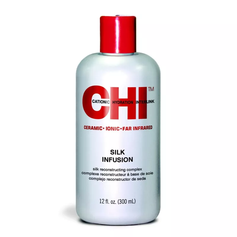 CHI Silk Infusion, odżywczy jedwab do włosów 355ml to innowacyjny produkt, który zapewnia intensywną regenerację i ochronę nawet najbardziej wymagającym włosom. Dzięki unikalnej formule opartej na naturalnych proteinach jedwabiu, pszenicy i soi, a także wzbogaceniu o ceramidy, witaminy i ekstrakty roślinne, jedwab CHI skutecznie odbudowuje strukturę włosa, nadając mu niezwykłą miękkość, blask i zdrowy wygląd. Produkt nie zawiera alkoholu, dlatego nie przesusza i nie obciąża włosów, a przy tym chroni je przed szkodliwym działaniem wysokiej temperatury podczas stylizacji oraz przed zanieczyszczeniami środowiskowymi.