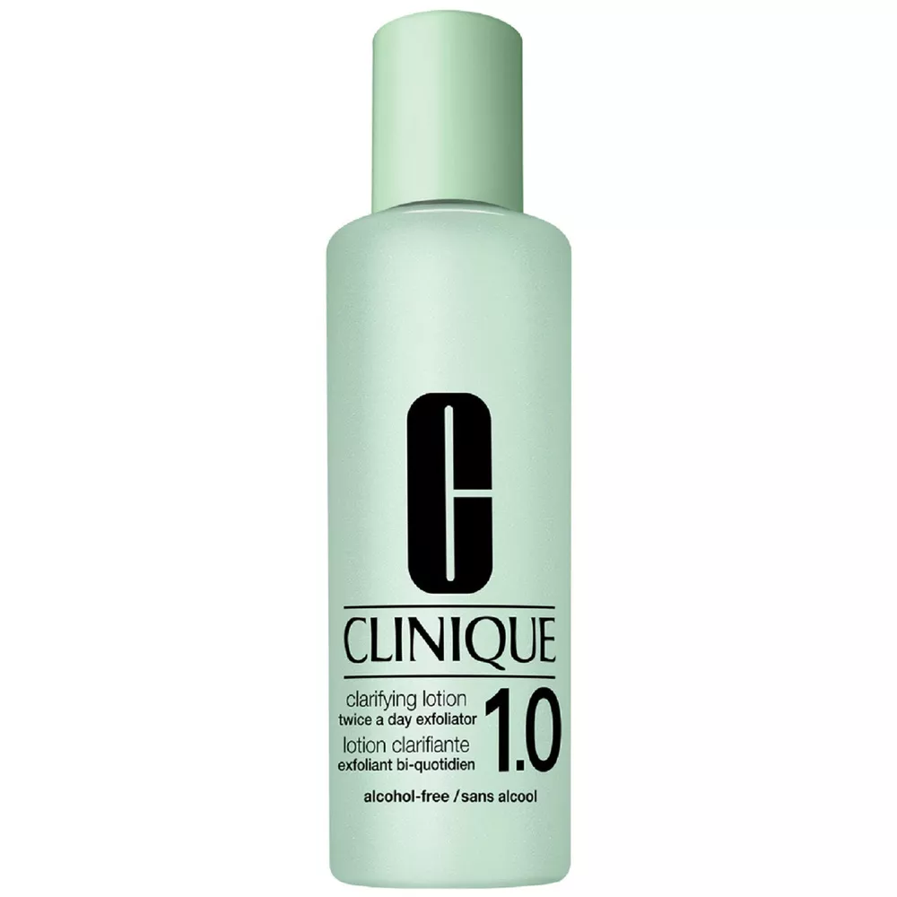 Clinique Clarifying Lotion 1.0 dzięki swojej unikalnej kompozycji składników, takich jak woda z oczaru wirginijskiego i kwas salicylowy, działa nie tylko złuszczająco, ale także nawilżająco. Zawartość kofeiny i kwasu hialuronowego dodatkowo wspiera regenerację i sprężystość skóry.
