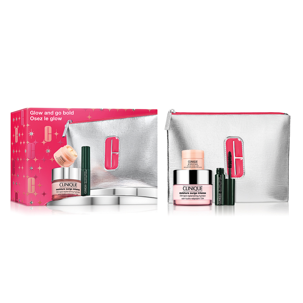 Poczuj moc intensywnego nawilżenia i natychmiastowego blasku z zestawem Clinique Glow and Go Bold! To starannie skomponowany zestaw premium, który łączy kultową pielęgnację skóry z efektownym makijażem. W praktycznej kosmetyczce znajdziesz aż trzy bestsellerowe produkty marki Clinique: pełnowymiarowy krem do twarzy Moisture Surge™ Intense 72H, krem pod oczy All About Eyes™ oraz tusz do rzęs High Impact™ Mascara. Dzięki nim zadbasz o zdrowy wygląd cery, promienne spojrzenie i perfekcyjnie podkreślone rzęsy każdego dnia – niezależnie od okazji.