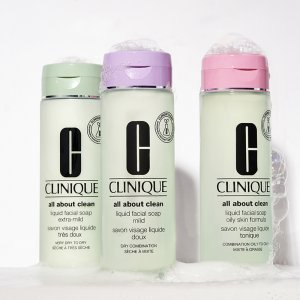 Clinique Liquid Facial Soap Mild jest pierwszym krokiem w systemie pielęgnacji skóry „3 Kroki Clinique”, który jest sekretem pięknej skóry. Współdziała z Clarifying Lotion oraz Dramatically Different Moisturising Lotion, zapewniając kompleksową pielęgnację.