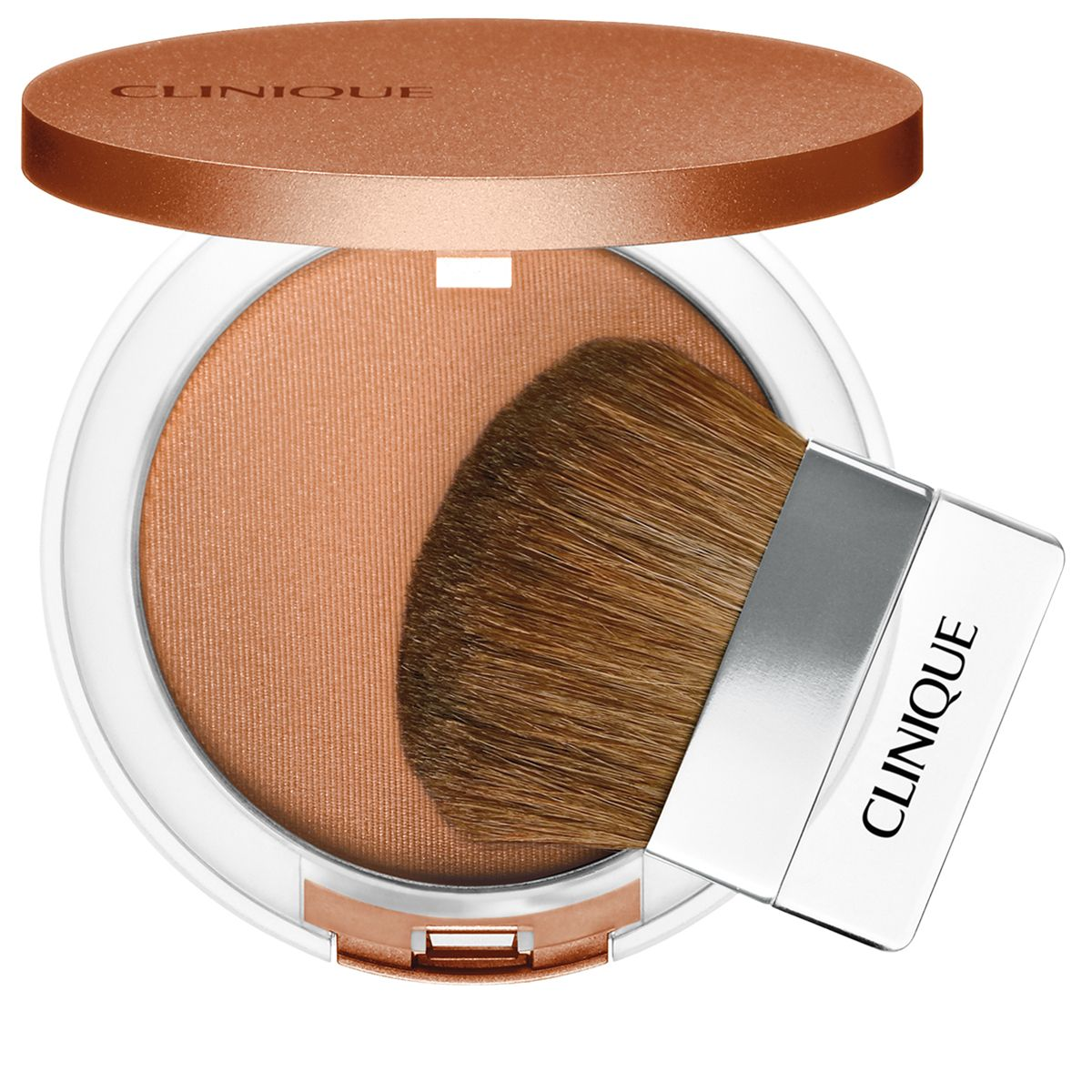 True Bronze Pressed Powder to lekki puder brązujący w kompakcie od marki Clinique, który zapewnia efekt naturalnie wyglądającej, promiennej skóry muśniętej słońcem. Beztłuszczowa formuła pudru łatwo się aplikuje i długo utrzymuje na skórze, umożliwiając stopniowe budowanie pożądanego efektu brązującego.