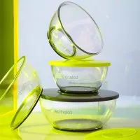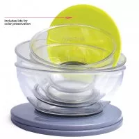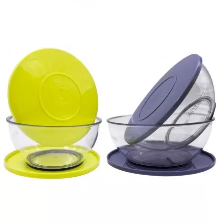 - W zestawie znajdują się dwie miski o wymiarach 12x5,5 cm oraz dwie większe miski o wymiarach 16x8 cm, co pozwala na elastyczne dopasowanie do potrzeb każdego użytkownika.