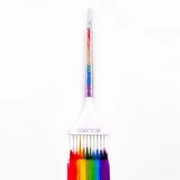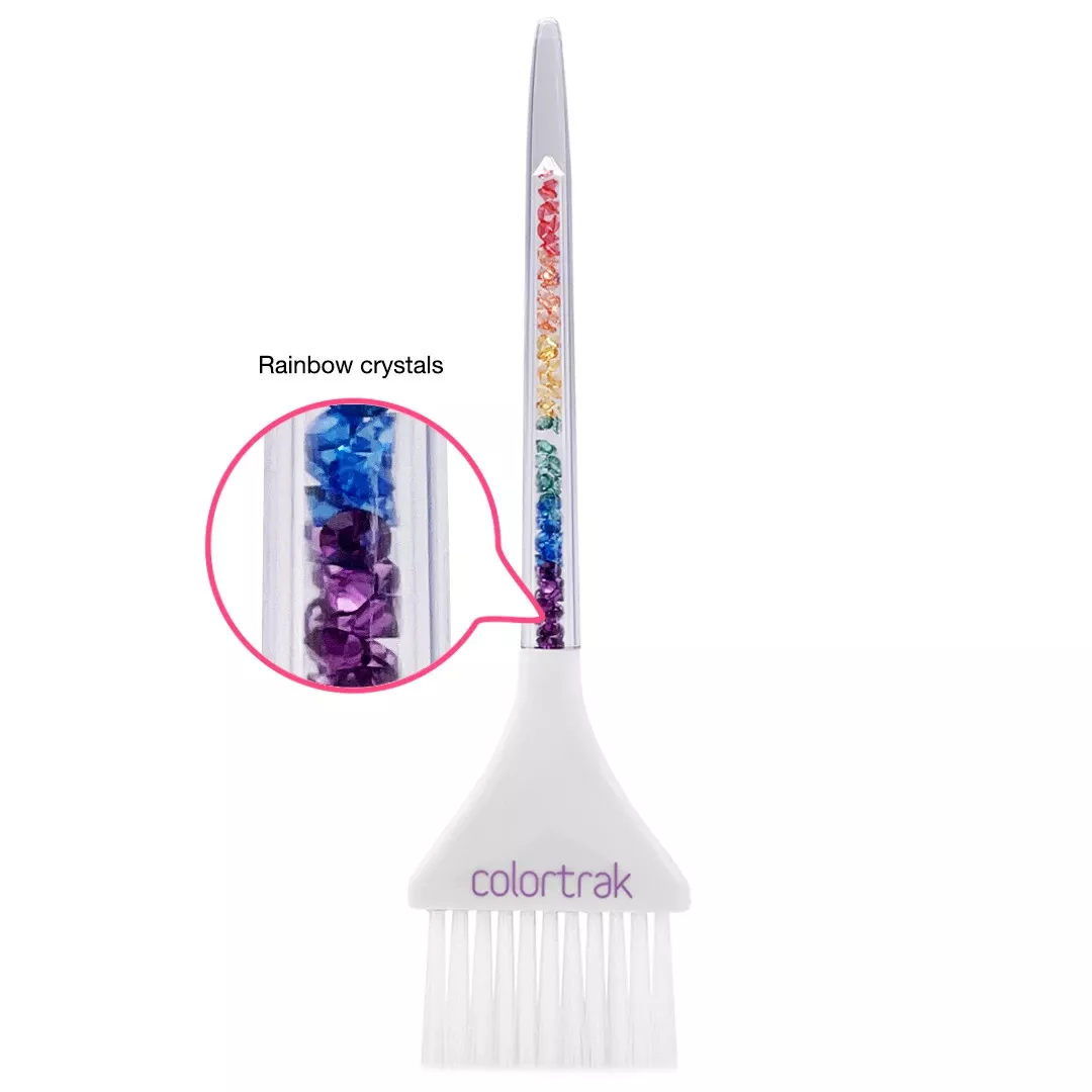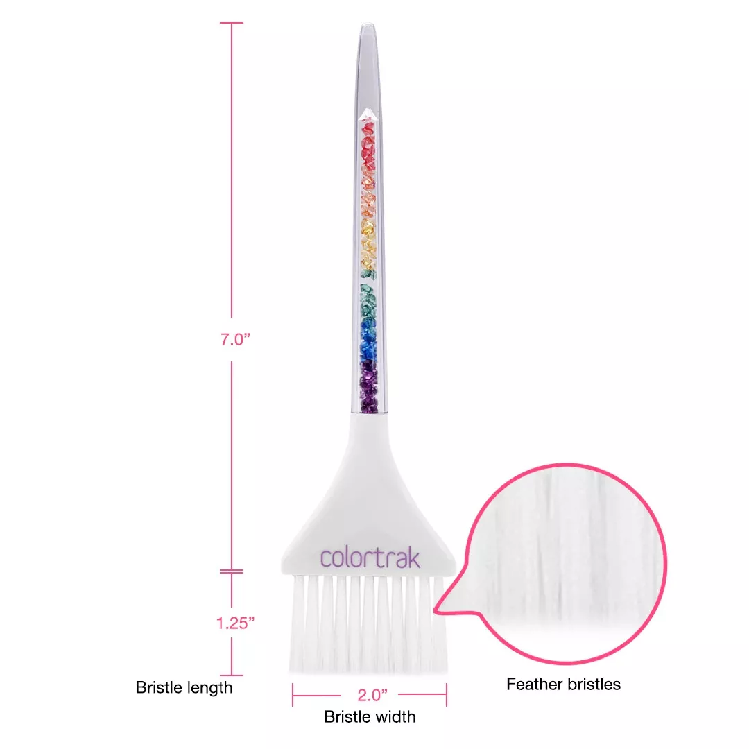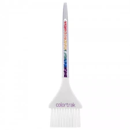 Odkryj wyjątkowy Colortrak Pride Brush Ultra Soft Feather, pędzelek do farbowania włosów, który łączy w sobie funkcjonalność i estetykę. To narzędzie zaprojektowane z myślą o profesjonalistach, którzy cenią sobie komfort pracy oraz oryginalny design. Jego ergonomiczna konstrukcja i kolorowe kryształki w rękojeści przyciągają wzrok i dodają energii każdej stylizacji.
