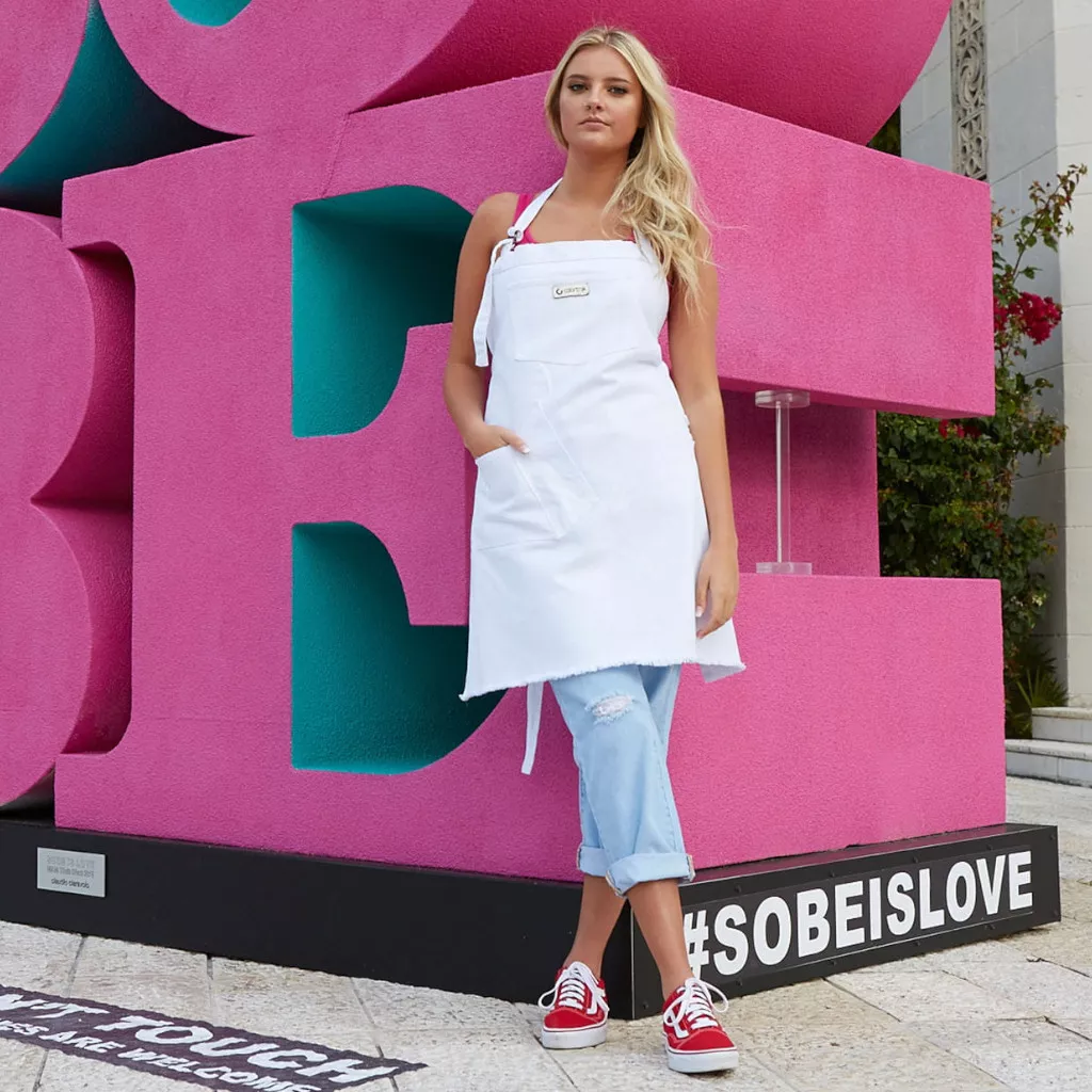 - Wyjątkowy i zmieniający się wizualnie: Fartuch SoBe White Denim to unikalne dzieło sztuki, które zmienia się wraz z Twoimi twórczymi działaniami.