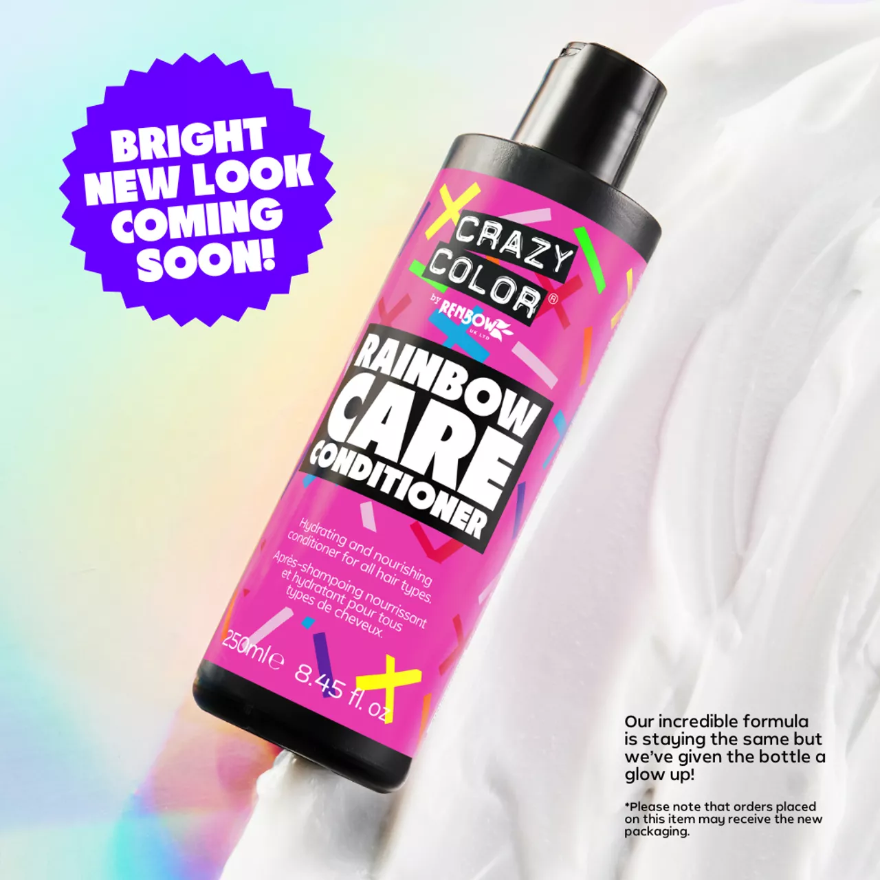 Rainbow Care to głęboka odżywka, która pomaga zachować siłę, połysk i elastyczność wszystkich kolorów włosów. Zawiera bogaty w witaminy olej z nasion słonecznika i odżywczy olej z orzechów brazylijskich, które zapewniają nawilżenie włosów, a jednocześnie pachną NIESAMOWICIE!