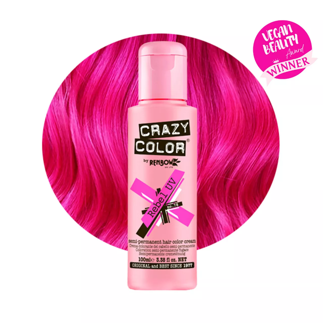 Opinie o Crazy Color, toner odżywczy do włosów, Rebel UV– neonowo różowy, nr 78, 100ml