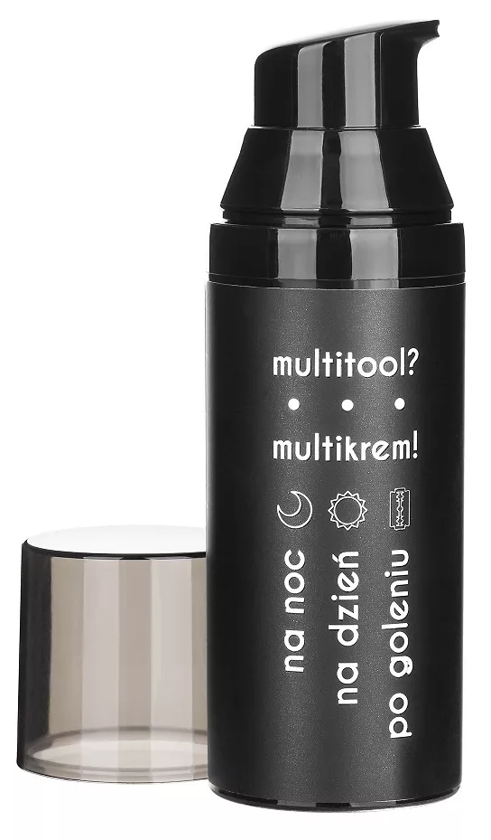 Multifunkcyjny krem do twarzy dla mężczyzn Cyrulicy MultiTool zadba o cerę w dzień i w nocy, a także przyniesie ukojenie po goleniu. Kosmetyk działa jako codzienny krem nawilżający do twarzy. Dodatkowo redukuje zaczerwienienia, koi i łagodzi podrażnienia. Pomaga w prawidłowym funkcjonowaniu gruczołów łojowych, ograniczając przetłuszczanie skóry. Skóra codziennie staje się mocniejsza, gładsza i zdrowsza. To także idealne rozwiązanie dla skóry wrażliwej. Ponadto kosmetyk sprawdzi się jako kojący i łagodzący balsam po goleniu. Naturalny fitokompleks z tulsi czyli świętej bazylii azjatyckiej, ostropestu plamistego oraz aktywnej frakcji zielonej algi zawarty w naszym kremie został stworzony z myślą o łagodzeniu wszelkich procesów powodujących podrażnienie skóry. Łagodzi uczucie dyskomfortu spowodowanego goleniem, zmniejsza zaczerwienienia oraz regeneruje uszkodzoną skórę. Wystarczy kupić tylko jeden krem, który zadba o cerę i w dzień, i w nocy, a dodatkowo łagodzi skórę po goleniu.