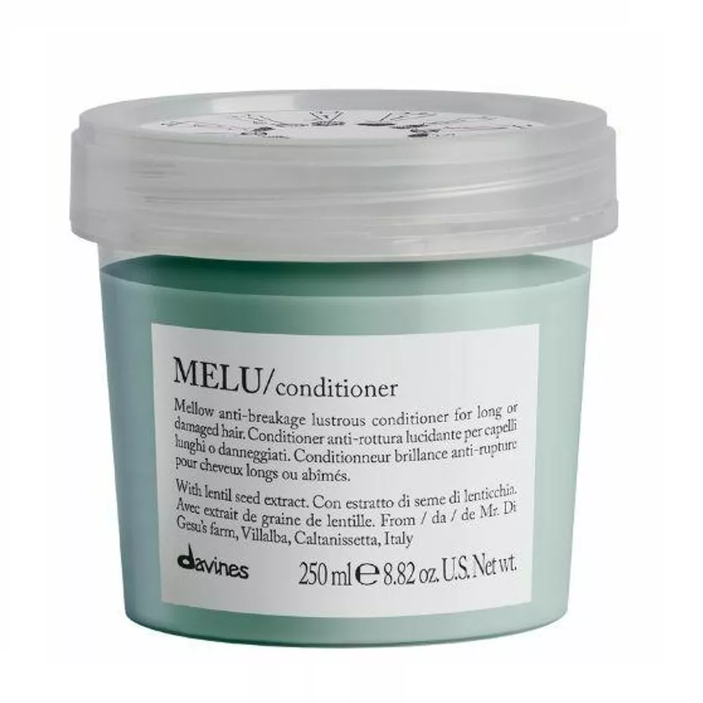 Davines MELU to wyjątkowa odżywka zapobiegająca uszkodzeniom włosów, idealna dla osób z włosami długimi lub zniszczonymi. Jej kondycjonujące działanie zapewnia intensywne nawilżenie, odżywienie końcówek oraz zapobiega łamaniu się włosów. Lekka formuła sprawia, że włosy stają się gładkie i miękkie, nie obciążając ich przy tym. Produkt zawiera naturalne składniki aktywne, takie jak ekstrakt z nasion soczewicy Villalba, bogaty w serynę, kwas glutaminowy oraz aminokwasy, które są kluczowe dla odżywienia i regeneracji włosów.