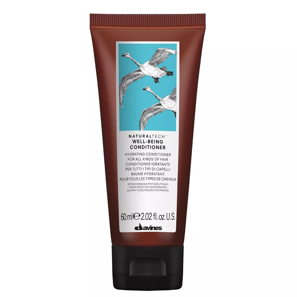 Davines Naturaltech Wellbeing Conditioner to nawilżająca odżywka do włosów, która została stworzona, aby skutecznie rozplątywać i nawilżać włosy. Dzięki niej włosy stają się miękkie i jedwabiste, a dodatkowe działanie przeciwutleniające chroni je przed szkodliwymi czynnikami zewnętrznymi. Odżywka zawiera naturalne składniki aktywne, takie jak fitoceutyki z jeżówki (echinacei), które są bogate w polifenole i cukry o silnym działaniu antyoksydacyjnym.
