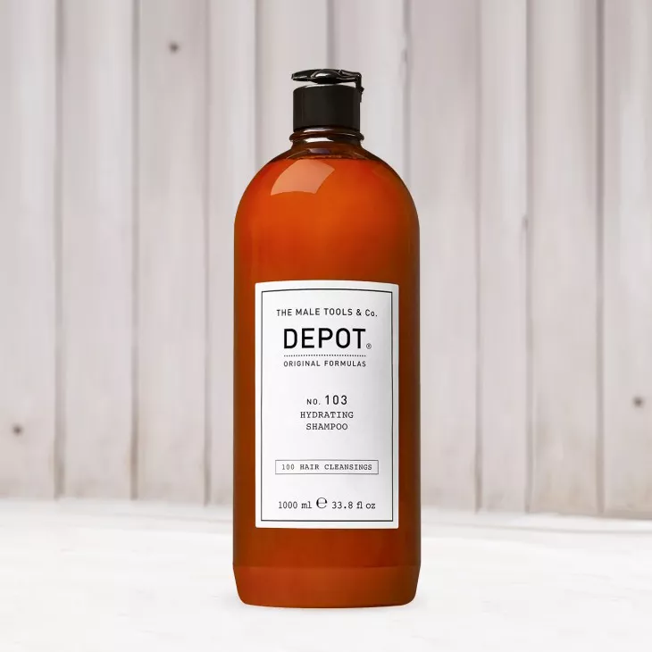 Nawilżający szampon Depot No. 103 przeznaczony jest do pielęgnacji włosów suchych i łamliwych. Produkt świetnie oczyszcza włosy, dodaje im miękkości i odżywienia. W składzie znajduje się sok z aloesu, który działa wzmacniająco, kojąco i regenerująco. Natomiast pro-witamina B5 ma działanie regenerujące, odżywcze i kojące. Aminokwasy i białka jedwabiu działają antystatycznie oraz utrzymują wilgotność i odżywienie zarówno skóry i włosów. A ekstrakty z imbiru i olej makadamia mają działanie zmiękczające, odżywcze, nawilżające i pobudzające. W efekcie włosy prezentują się doskonale.
