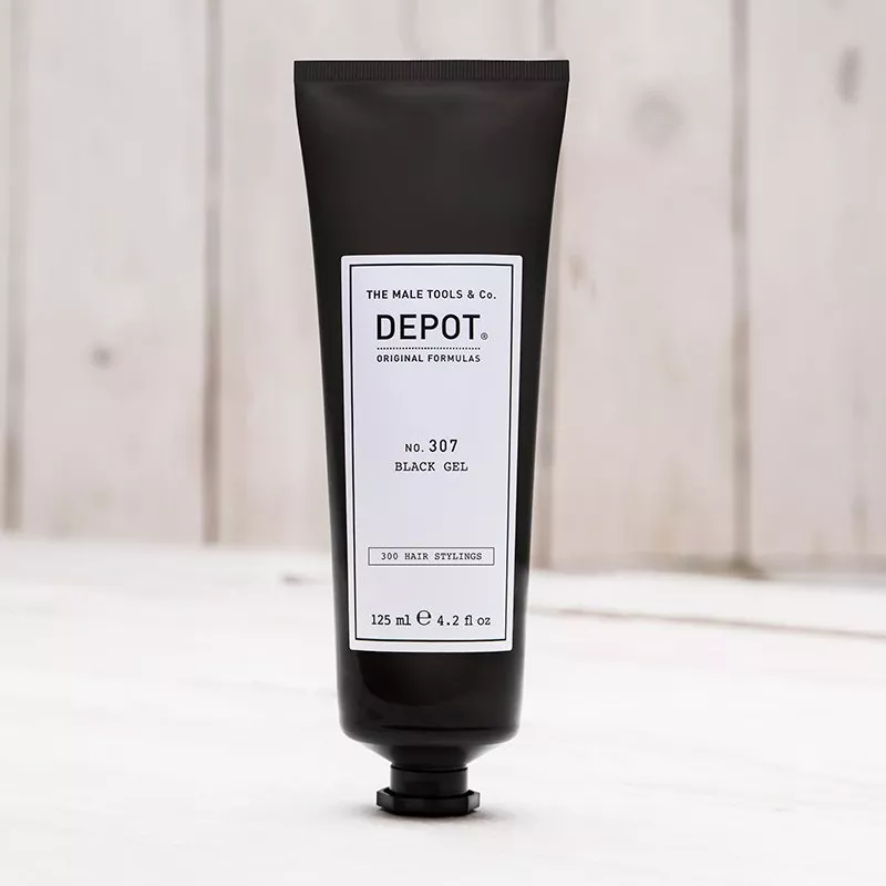 Żel do włosów Depot No. 307 nie tylko zapewnia utrwalenie i wykończenie fryzury, ale dodatkowo maskuje siwiznę dzięki czarnym pigmentom. Ale to nie wszystko! Żel dodaje włosom objętości. Zapewnia średnie utrwalenie. W składzie warto zwrócić uwagę na kompleks 10 roślinnych ekstraktów, które nawilżają włosy i działają antyoksydacyjnie. Dodatkowo olej ze słonecznika chroni włosy, nawilża je i odżywia. Olej ten dostarcza włosom minerałów, witamin, kwasów Omega i witaminy E. Dodatkowo gliceryna utrzymuje włosy gładkie, elastyczne i ładne.