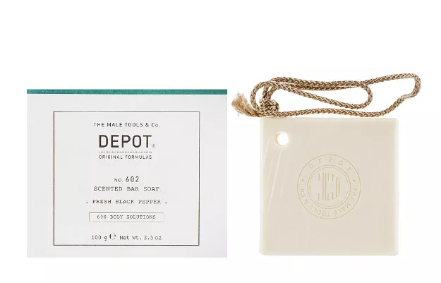 Mydło do ciała Depot No. 602 urzeknie Cię zapachem oraz właściwościami. Bogata w składniki odżywcze formuła mydła pielęgnuje ciało. Mydło przyjemnie się pieni, uwalniając intensywne, perfumowane aromaty. W składzie znajduje się olej z oliwek i olej kokosowy. Mydło można powiesić na sznureczku, co jest bardzo wygodne.
