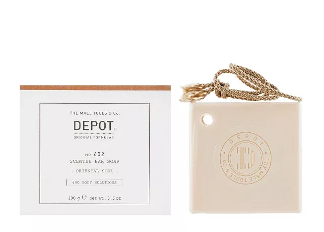Mydło do ciała Depot No. 602 urzeknie Cię zapachem oraz właściwościami. Bogata w składniki odżywcze formuła mydła pielęgnuje ciało. Mydło przyjemnie się pieni, uwalniając intensywne, perfumowane aromaty. W składzie znajduje się olej z oliwek i olej kokosowy. Mydło można powiesić na sznureczku, co jest bardzo wygodne.