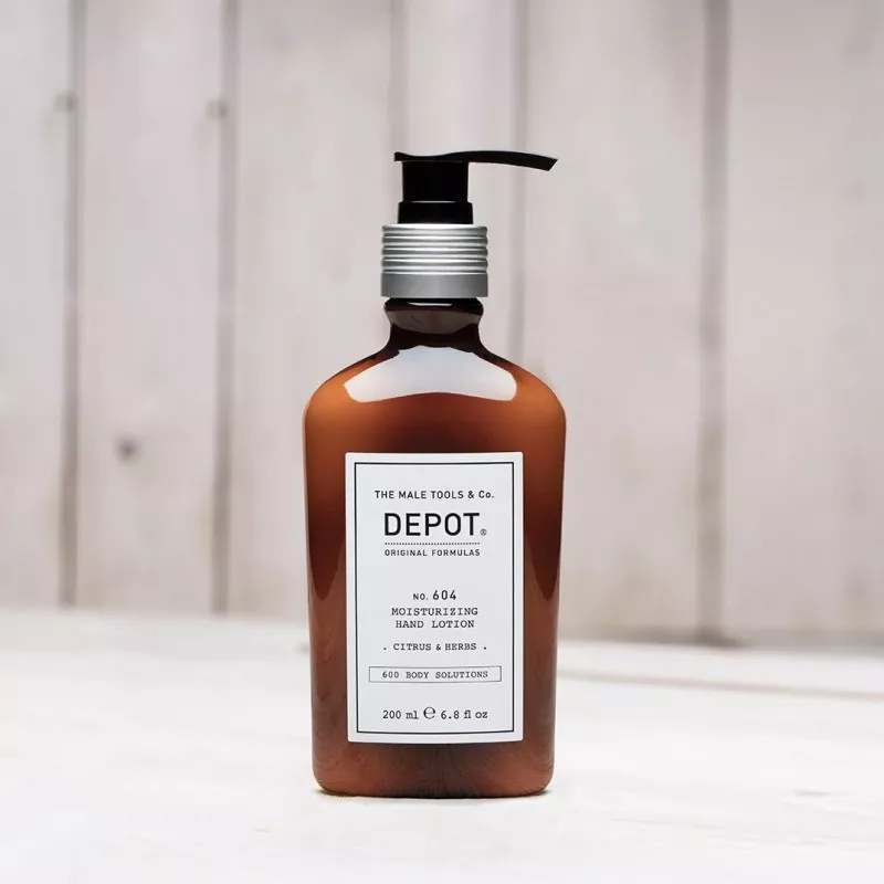 Krem do rąk Depot No. 604 dzięki swoim właściwościom i specjalnie dobranym składnikom aktywnym może być stosowany jako dogłębnie nawilżający skórę balsam. Kosmetyk chroni skórę dłoni przed negatywnymi czynnikami i pozostawia na skórze przyjemny zapach cytrusów i środziemnomorskich ziół. Gliceryna zawarta w tym balsamie wygładza skórę, zaś olej ryżowy zmiękcza je i nawilża. Dodatkowo odżywczo działają olej jojoba i olej arganowy. Z kolei sorbitol zapewnia skórze odpowiedni poziom nawodnienia, zaś masło shea chroni skórę przed złym wpływem środowiska. Jako antyoksydant zastosowano tutaj witaminę E, regenerująco zadziała prowitamina B5.