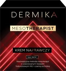 Odkryj moc profesjonalnej pielęgnacji z Dermika Mesotherapist Krem Naprawczy Na Noc, 50ml, inspirowany doświadczeniami lekarzy medycyny estetycznej. Ten wyjątkowy krem łączy technikę mezoterapii z zaawansowaną Technologią Repair & Fill, aby skutecznie regenerować skórę i redukować jej wiotkość, przywracając młodzieńczy wygląd.